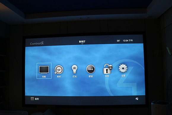 影院智能控制是如今家庭影院必備的一項功能了。拋開繁多的設備遙控器,只需要Control4遙控器或者面板上一鍵操控,就可以控制這間影視廳的一切,燈光的開閉、場景模式啟動、設備通道的切換、一鍵開關機,所有復雜的操作都得到了最有效的簡化。