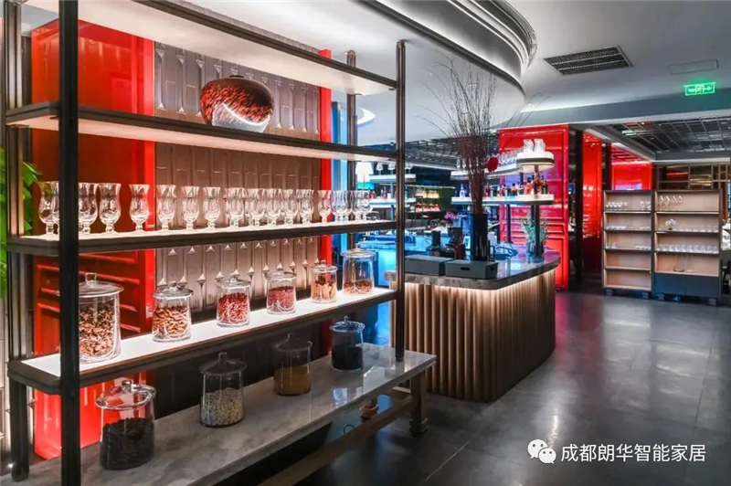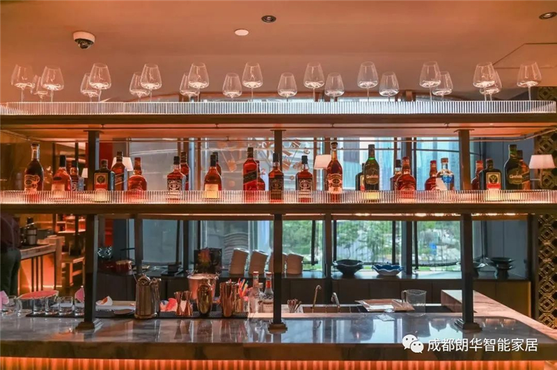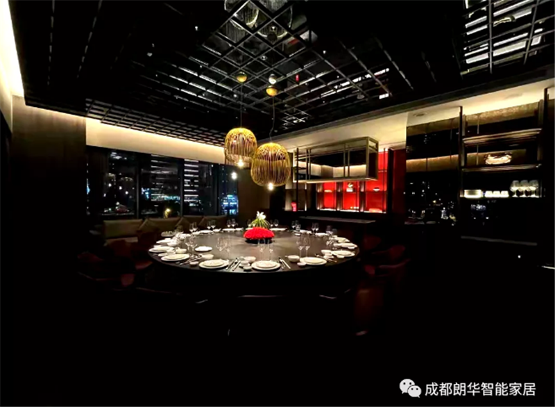還可以通過終端APP輕松實現對室內燈光的開關控制和部分區域的燈光亮度調節,用“明與暗,光與影”將餐廳魅力更好地展現出來。