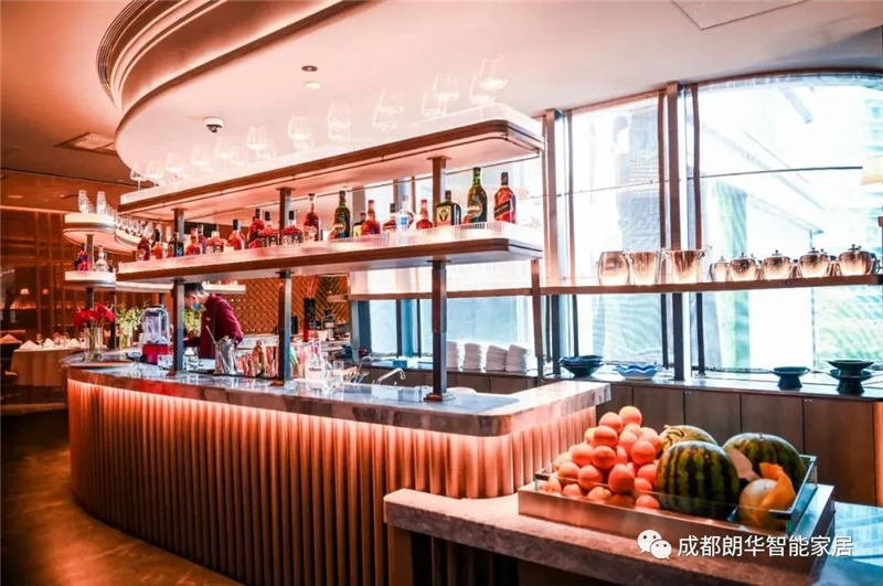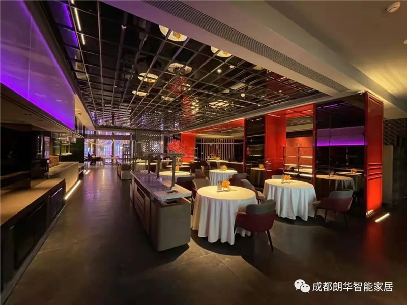 一個恰到好處的燈光效果需要一個好的調光系統來實現。通過對燈具智能化控制,可以根據不同時段調節燈光的亮度和層次,形成不同的就餐場景,從而營造出相對應的舒適氛圍,這樣不但使客人能夠清楚地看到食物,提高食欲,還能使之與周圍環境相匹配構成一種視覺上的層次立體感。