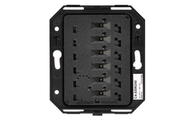 歐規無線開關場景 型號:C4-SSW240-XX 單路開關+場景 C4-SDSW240-N 兩路開關+場景 a帶一路開關控制的場景面板,場景按鍵可自組合既可以直接接負載線,控制1-2路燈光開關,同時也可用作場景面板 背光按鍵刻字及可編程顏色控制讓您不論在任何時間或環境亮度都能看得清楚 可編程的RGB LED提供系統中燈光及其他設備的狀態反饋 環境光傳感器可根據房間中的亮度自動調整背光及LED狀態燈的亮度 按鍵組和蓋板需另行訂購,顏色可自行組合