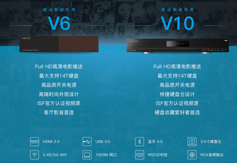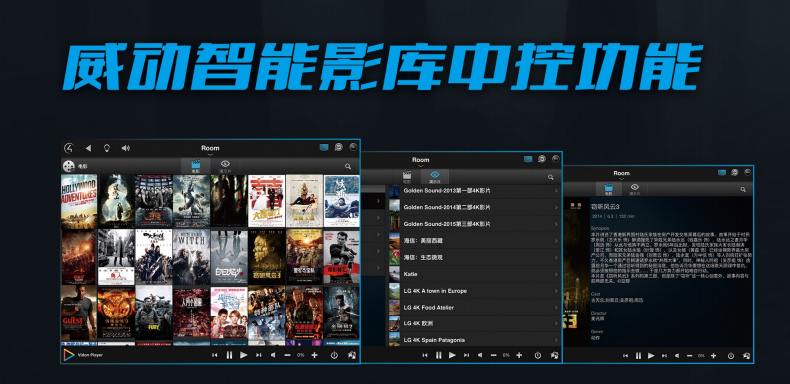 威動智能影庫是針對高端別墅影音室、家庭影院及客廳影院打造的全新一站式智能影音解決方案,致力與解決智能影音中的痛點---影片下載、影院更新、影片存儲、影片管理、影片播放的諸多困擾。