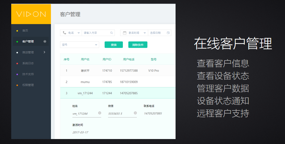 實現在線客戶管理? ? ? ?遠程査看設備狀態